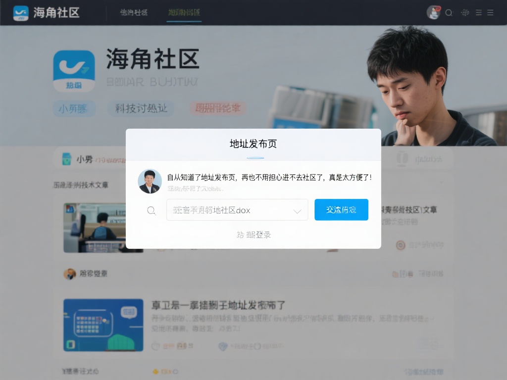 小明是一名热衷于科技讨论的用户,他每天都会在海角社区上查阅最新的技术文章和交流心得。有一天,他发现自己无法访问社区,这让他感到相当困扰。在朋友的建议下,他访问了海角社区的地址发布页,迅速找到了新的社区地址并成功登录。“自从知道了地址发布页,再也不用担心进不去社区了,真是太方便了!”小明如是说。